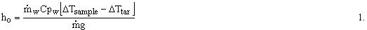 where mw is the cooling water flow rate, Cpw is the specific heat for the water, mg is